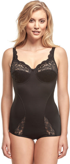 SUSAModischer Body mit hübscher Spitze im Cup und am Beinausschnitt. Untercup mit Futter für optimalen Halt. Verschluss im Schritt. Verstellbare Träg...