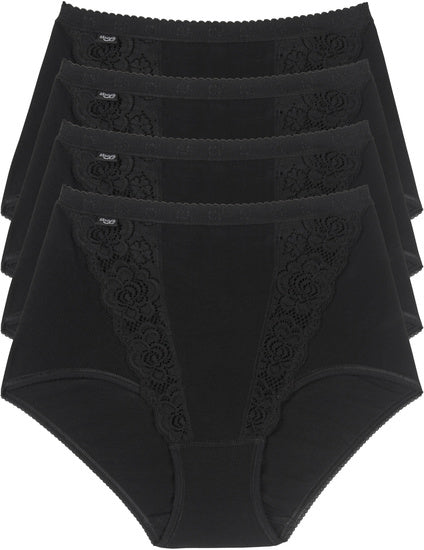 Sloggi4 Pack aus hochkomfortablen, femininen Maxi Slips mit optimaler Bewegungsfreiheit. Anschmiegsame, qualitativ hochwertige Baumwolle, dezente Spitzen...